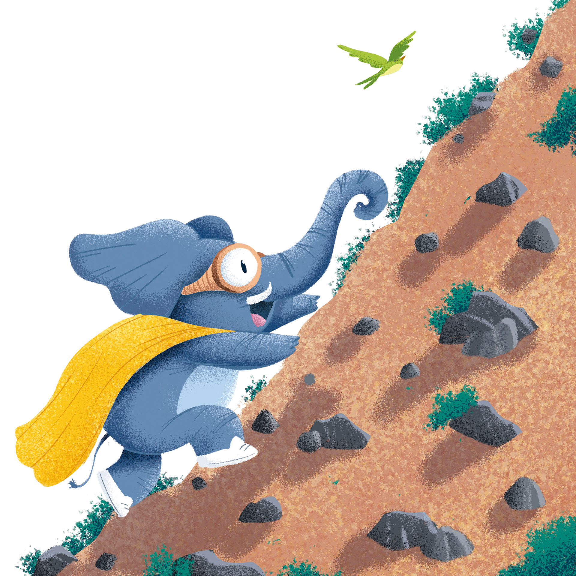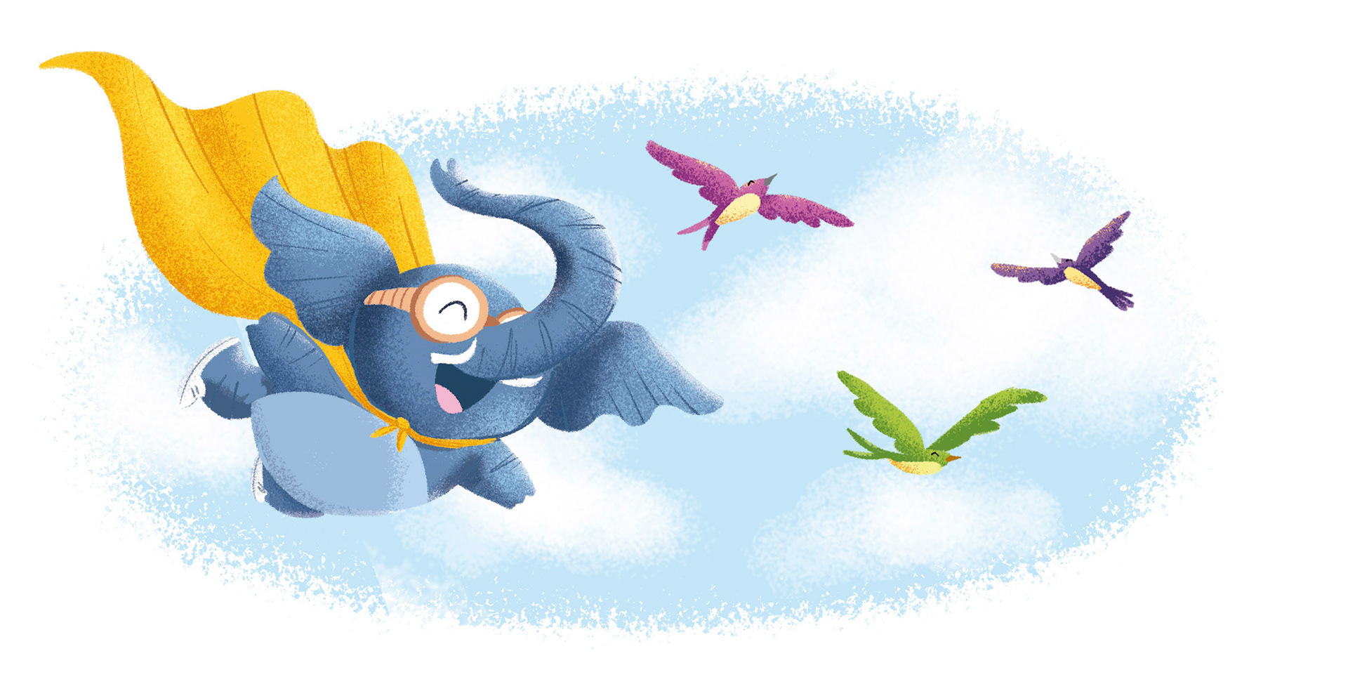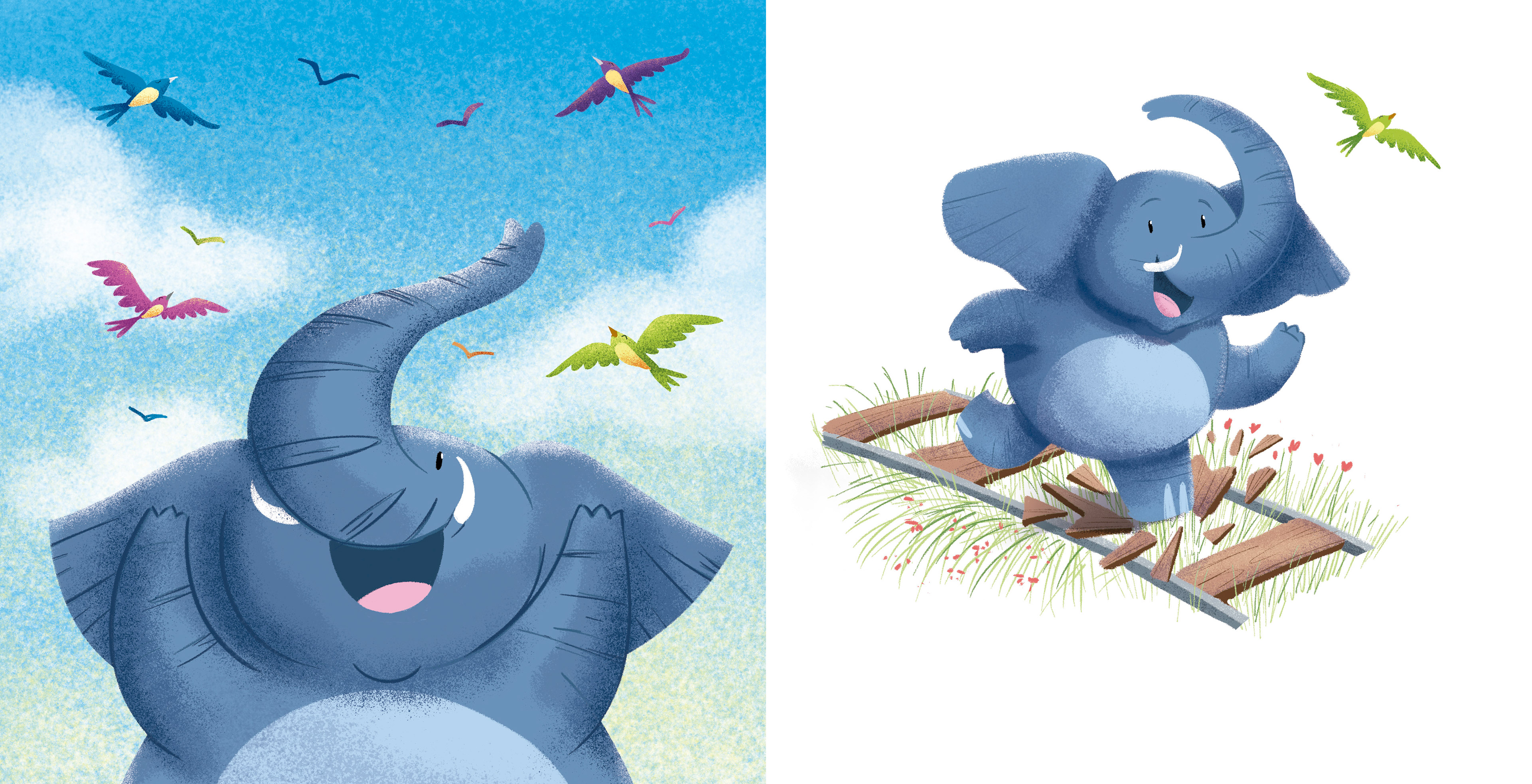 EN | Illustrations for the children's book "Juvenal Romântico Viajante", written by Marina Barbosa Mendonça Lima. The story is about an Elephant crazy for flying, like a bird.
